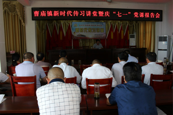 为庆祝建党97周年,深入贯彻落实习近平总书记系列重要讲话精神,突出党要管党、从严治党这条主线,激励广大党员干部新时代新担当新作为。近日,曹庙镇举办新时代传习讲堂暨庆“七一”党课报告会,镇党委书记李仁合围绕“发挥党员干部作用 勇于担当作为”主题作党课报告,镇机关全体干部、镇直单位负责人、全体村干、扶贫专干共120余人聆听了报告。